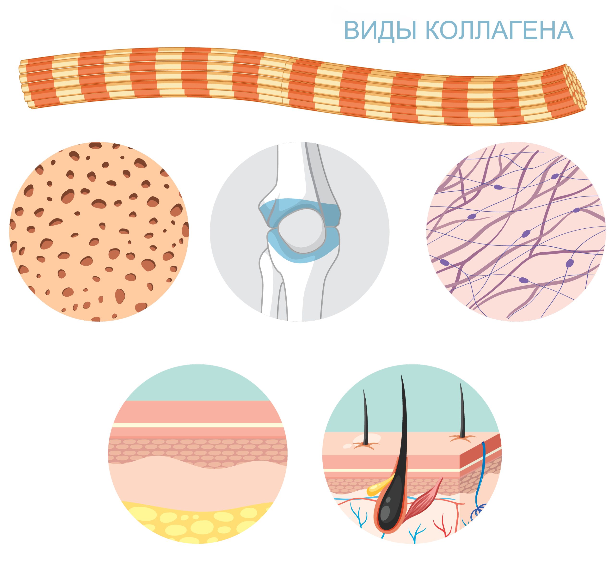 Существует несколько типов коллагена, каждый из которых выполняет свою функцию. Например: