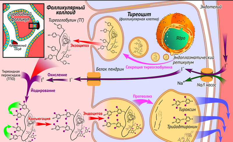 - Получение исходных материалов: Клетки получают необходимые вещества из крови‚ такие как аминокислоты‚ холестерин и йод.